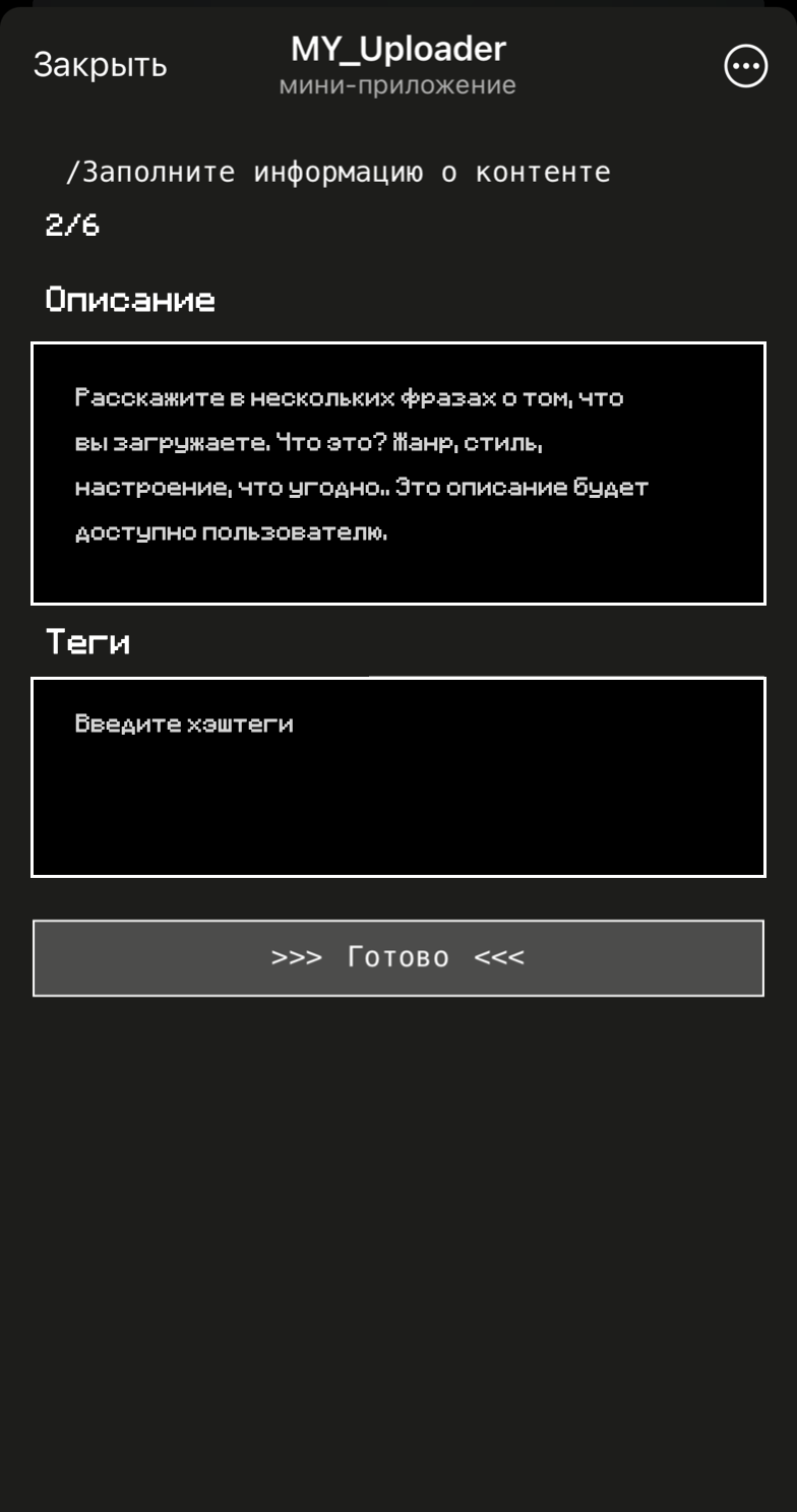 Добавить экран для хэштегов (описания загружаемого контента) на этапе загрузки контента